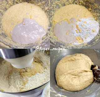 Προσθέτουμε 2 κουταλιές από το αλεύρι, ανακατεύουμε και αφήνουμε το μείγμα να φουσκώσει για 20 λεπτά.